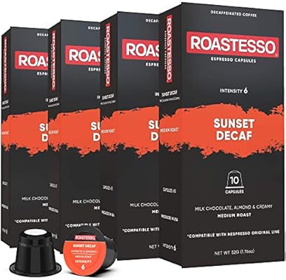 Roastesso Coffee Sunset Decaf Espresso Pods Nespresso Capsules Compatible With Originalline Machines Medium Roast Intensity 6 Natural Decaffeinated Decaffeinato Ristretto 40 Count Amazon Com Grocery Gourmet Food